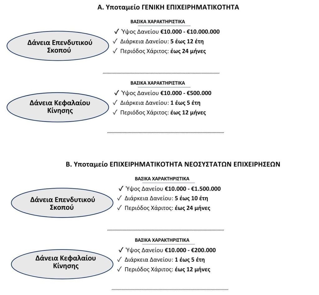 –δάνεια κεφαλαίου κίνησης (από 10.000 ευρώ έως 500.000 ευρώ).