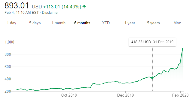 Νωρίτερα σήμερα η μετοχή ξεπέρασε και τα 900 δολάρια