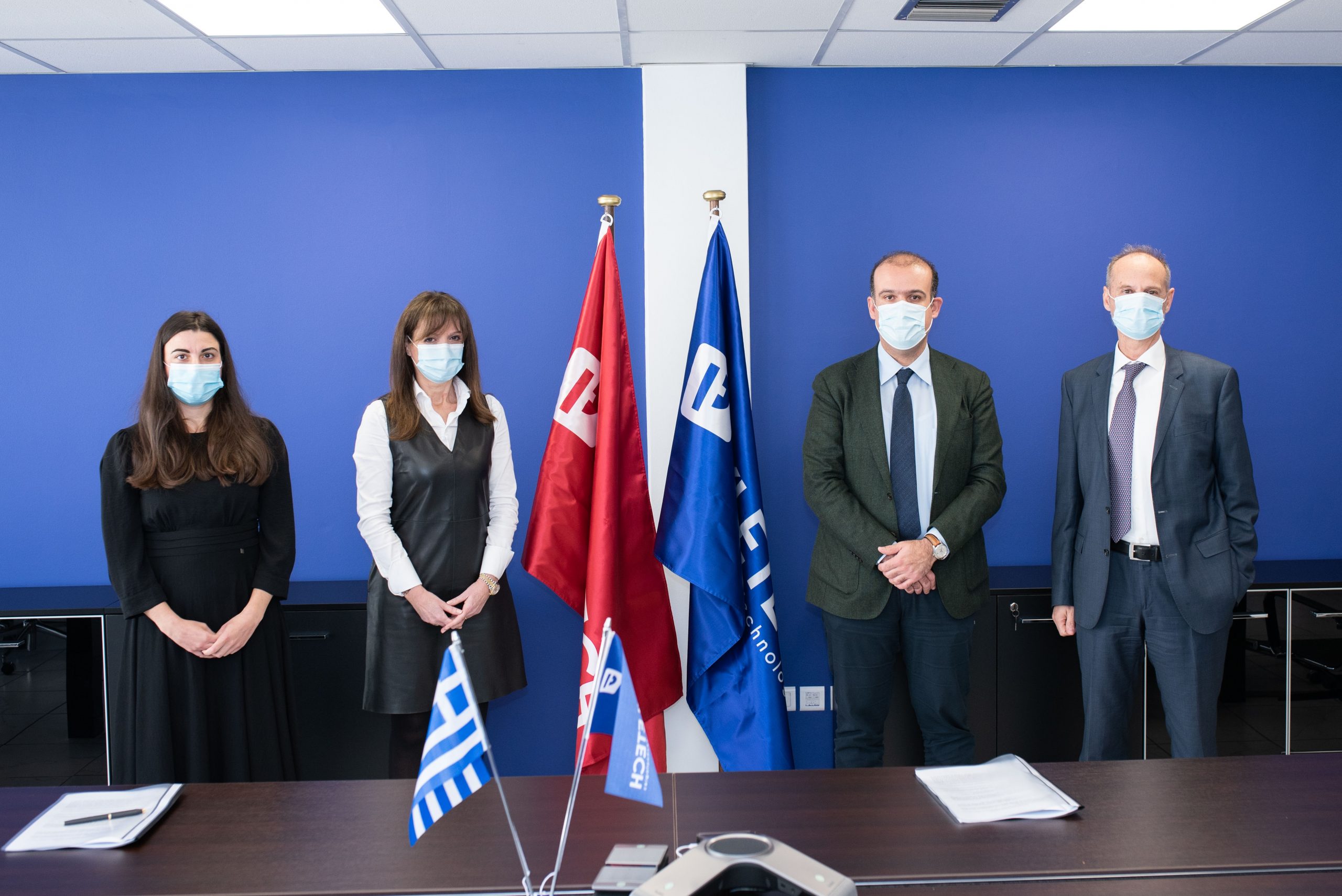 (από αριστερά προς τα δεξιά): Η όμαδα της CIBOS με τις ερευνήτριες κα Αθανασία Τσέρτου, κα Γκέλυ Λάτσα και τον Dr. Αγγ. Αμδίτη, επικεφαλής της ομάδας με τον Dr. Γιώργο Λιβανό, Διευθύνοντα Σύμβουλο της Pyletech