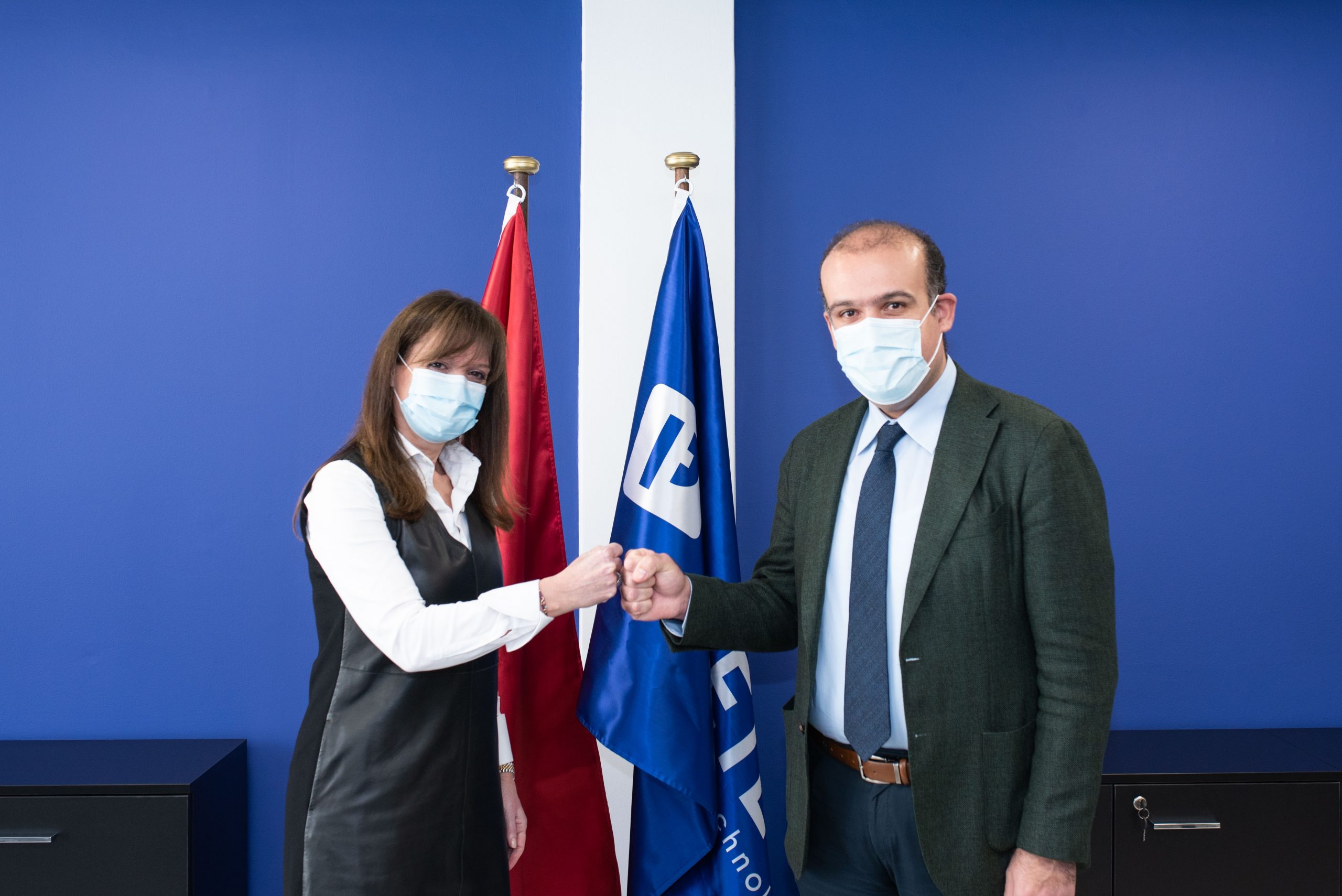 (από αριστερά προς τα δεξιά): H κα Γκέλυ Λάτσα, ερευνήτρια της ομάδας CIBOS με τον Dr. Γιώργο Λιβανό, Διευθύνοντα Σύμβουλο της Pyletech