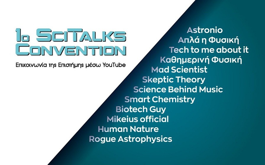 Το “1ο SciTalks Convention” αποτελεί μία ευκαιρία συνάντησης των μεγαλύτερων ελληνικών καναλιών YouTube που είναι αφιερωμένα στην Επικοινωνία της Επιστήμης, με τους διαδικτυακούς ακολούθους τους κάθε ηλικίας. Για την διοργάνωσή του καταφτάνουν οι δέκα σπουδαιότεροι Έλληνες YouTubers από τον κόσμο της Επικοινωνίας της Επιστήμης και ενώνουν τις δυνάμεις τους με το Ίδρυμα Ευγενιδου προκειμένου να παρουσιάσουν στο κοινό κάτι μοναδικό για τα ελληνικά δεδομένα.