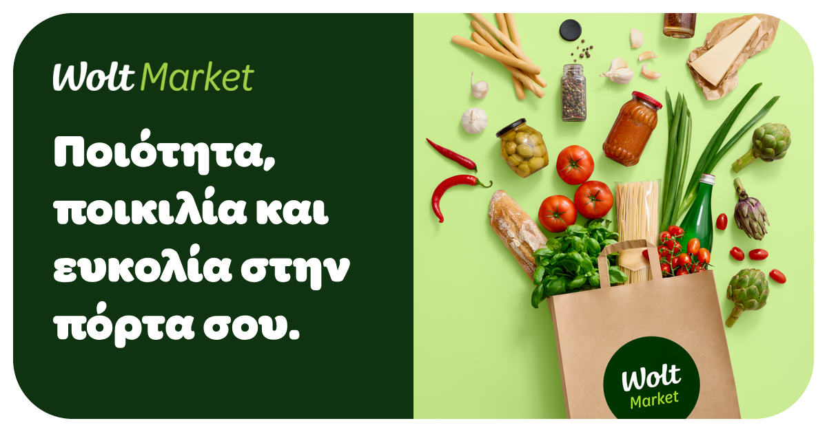 Με μια νέα, πράσινη ταυτότητα που αναδεικνύει τη φρεσκάδα, την ποιότητα και τη σύνδεση με την τοπική παραγωγή, το Wolt Market κάνει το επόμενο βήμα της πορείας του και εξελίσσεται σε έναν ολοκληρωμένο ψηφιακό προορισμό για τα καθημερινά και εβδομαδιαία ψώνια.