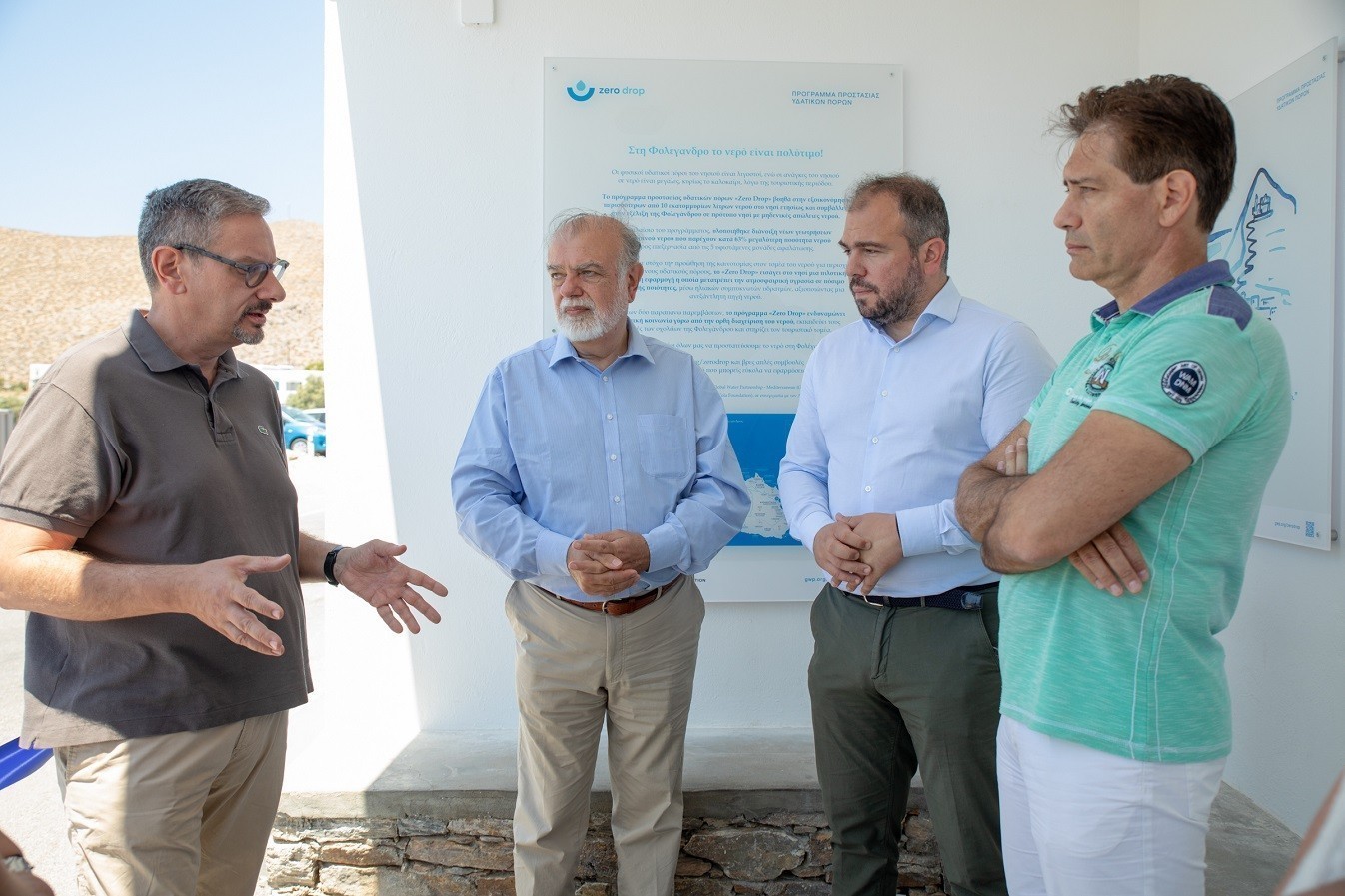 Ο Καθηγητής κ. Μιχάλης Σκούλλος, Πρόεδρος, Global Water Partnership – Mediterranean ανέφερε σχετικά: «Το νερό, πέρα από αναγκαίο για τις βασικότερες ανάγκες του ανθρώπου και της φύσης, αποτελεί και τη συχνά αόρατη βάση της οικονομίας. Στη Φολέγανδρο, όπως και σε πολλά ελληνικά νησιά, η λειψυδρία αποτελεί τροχοπέδη για την τουριστική ανάπτυξη, ενώ η υψηλή ζήτηση νερού από τον τουρισμό τους θερινούς μήνες έρχεται σε ανταγωνισμό με τις ανάγκες άλλων τομέων στα ευαίσθητα νησιωτικά οικοσυστήματα. Μέσω του ‘Zero Drop’, παρέχουμε στη Φολέγανδρο αρκετό νερό ώστε να καλύψει το έντονο έλλειμα μεταξύ παροχής και ζήτησης, ενώ ταυτόχρονα προωθούμε ένα αειφόρο τουριστικό μοντέλο για νησιωτικούς και παράκτιους μεσογειακούς προορισμούς που έχει ως αναπόσπαστο στοιχείο του την ολοκληρωμένη διαχείριση των υδατικών πόρων».