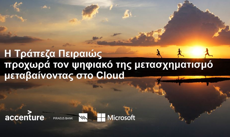 Με την Accenture και τη Microsoft συνεργάζεται η Τράπεζα Πειραιώς για την επιτάχυνση του ψηφιακού της μετασχηματισμού, εφαρμόζοντας μια cloud-first προσέγγιση. Κοινή φιλοδοξία αυτής της πρωτοβουλίας είναι η ενίσχυση της θέσης της Τράπεζας Πειραιώς ως ενός χρηματοοικονομικού οργανισμού νέας γενιάς, τροφοδοτούμενου από τεχνολογία αιχμής cloud, με στόχο να παρέχει ανωτέρου επιπέδου τραπεζική εμπειρία.