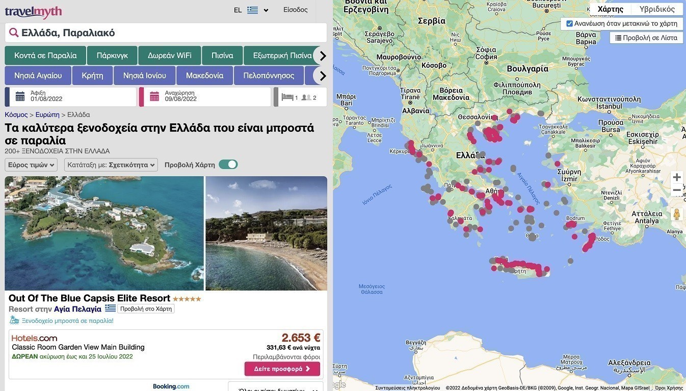 Γ.Ν.-Σ.Β: Η Travelmyth συγκρίνει τις τιμές από διάφορες σελίδες κρατήσεων με τις οποίες είναι συνδεδεμένη σε πραγματικό χρόνο, ώστε να προσφέρει το καλύτερο ξενοδοχείο στην καλύτερη διαθέσιμη τιμή. Αυτό το έχουμε καταφέρει μέσα από στρατηγικές συνεργασίες που έχουμε συνάψει με γνωστούς παρόχους κρατήσεων όπως η Booking, η Hotels.com, η Expedia κ.α., οι οποίοι παρέχουν τον κατάλογο ξενοδοχείων τους και τις τιμές τους στην Travelmyth. Συνεργαζόμαστε επίσης με bed banks (όπως η Hotelbeds), αλλά και με μεμονωμένα ξενοδοχεία μέσω του WebHotelier B2B Platform, έτσι ώστε να επιτρέπουμε κρατήσεις απευθείας στην Travelmyth χωρίς να παραμέμπουμε τους επισκέπτες μας σε άλλους παρόχους. Στοχεύουμε επίσης στο άμεσο μέλλον να επεκτείνουμε τις συνεργασίες μας με περισσότερα ξενοδοχεία και bed banks.