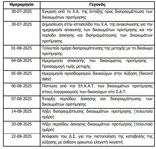 Η περίοδος άσκησης του δικαιώματος προτίμησης ορίζεται από την 07.08.2025 έως και την 20.08.2025.