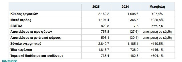 Το μικτό κέρδος διαμορφώθηκε σε €1,19 εκατ., έναντι €366,5 χιλ. την προηγούμενη χρήση, με το μικτό περιθώριο κέρδους να βελτιώνεται σε 55,2%. Η βελτίωση αυτή αποτυπώθηκε και στην κερδοφορία, καθώς τα EBITDA ανήλθαν σε €820,8 χιλ., ενώ τα κέρδη μετά από φόρους διαμορφώθηκαν σε €593,1 χιλ., έναντι ζημιών €30,4 χιλ. το 2024.