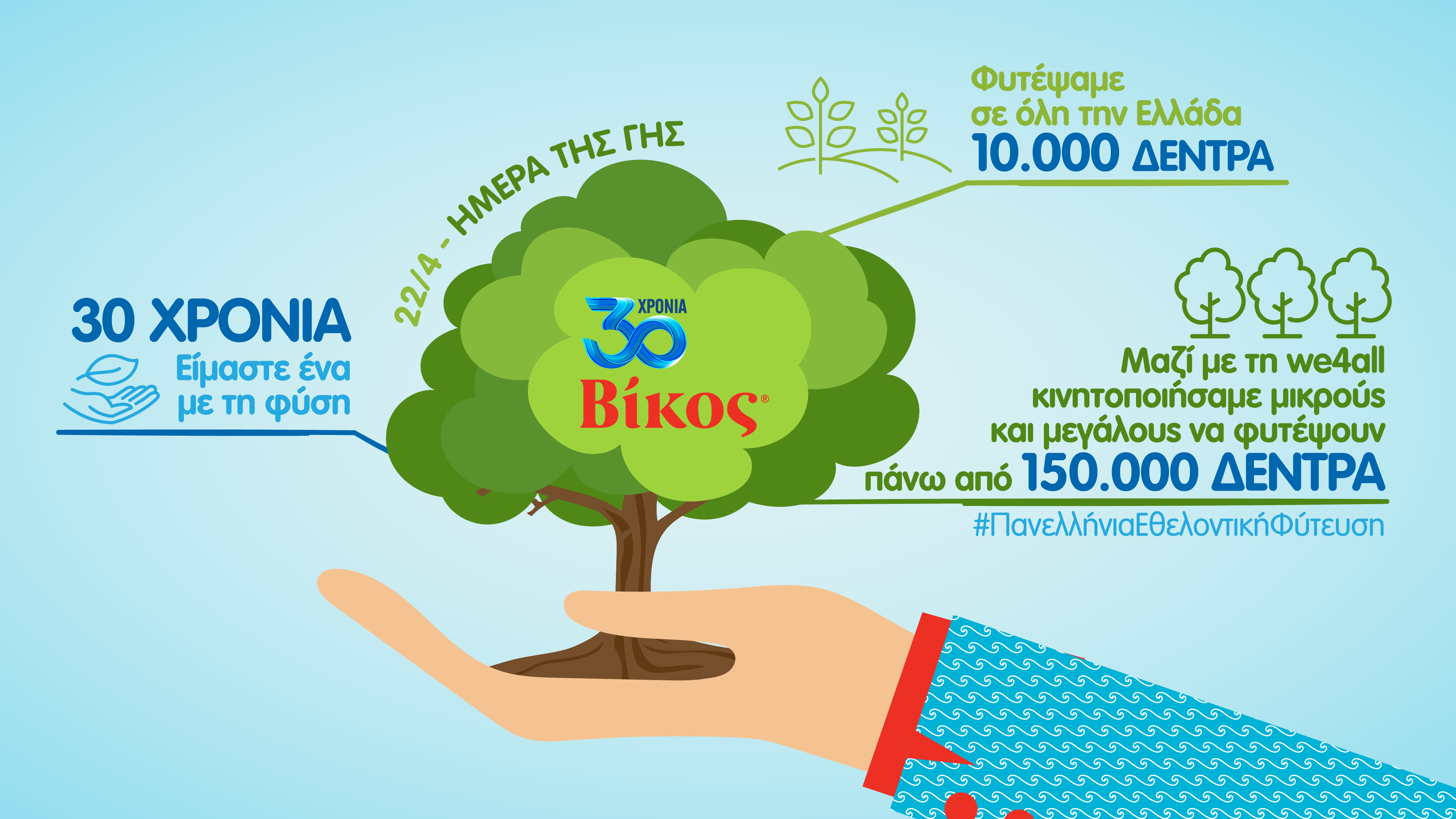 Με κεντρικό μήνυμα «Ο Βοίκος της Ζωής μας» και στο πλαίσιο των περιβαλλοντικών της δράσεων, η εταιρεία Βίκος έχει δενδροφυτεύσει πάνω από 10.000 δέντρα σε ολόκληρη την Ελλάδα, διατηρώντας ένα σημαντικό ιστορικό που χρονολογείται από το 1996.