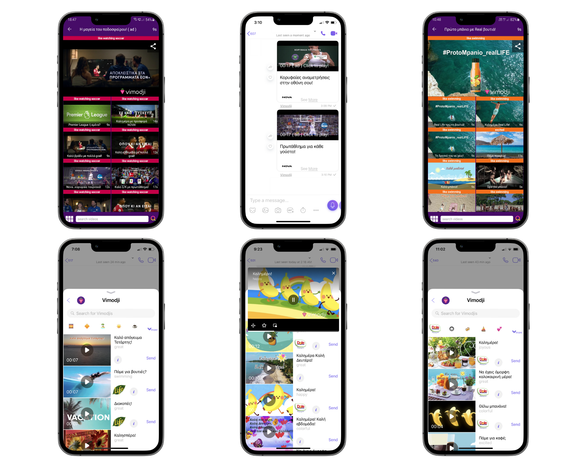 Το Vimodji είναι μία από τις ταχύτερα αναπτυσσόμενες startup εταιρείες, με γραφεία στη Βρετανία και στελέχη ελληνικής καταγωγής. Πρόκειται για μια πλατφόρμα ανταλλαγής μηνυμάτων με video, που επιτρέπει στους χρήστες να εκφράζουν ελεύθερα τα συναισθήματα/μηνυματά τους και να τα μοιράζονται με φίλους, συγγενείς και συνεργάτες. Η πλατφόρμα είναι διαθέσιμη και μέσα από τις επιλογές του Viber. Ο χρήστης αφού εισέλθει σε μια επαφή του, πατάει το κουμπί Gif+ και επιλέγει τη φράουλα – το σήμα του Vimodji. Στη συνέχεια, μπορεί να αναζητήσει τα πιο δημοφιλή βίντεο της ημέρας ή εκείνο το Vimodji που εκφράζει τη διάθεσή του και να το στείλει στους φίλους του. Το Vimodji είναι επίσης διαθέσιμο σε λογισμικό iOS (iMessage) και Android, όπως και στο web (www.vimodji.com)