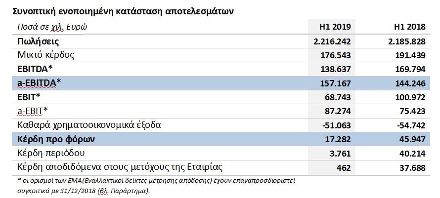 Το ενοποιημένο αναπροσαρμοσμένο EBITDA (a-EBITDA) αυξήθηκε κατά 9% σε 157 εκ. ευρώ κατά το πρώτο εξάμηνο του 2019 (πρώτο εξάμηνο 2018: 144 εκ. ευρώ).