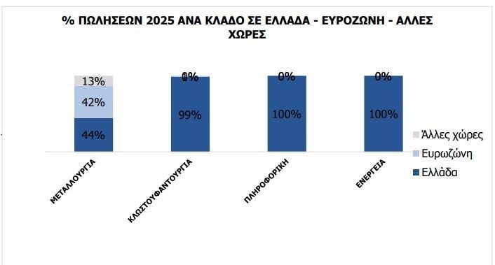Οι εξαγωγές του ομίλου αυξήθηκαν σημαντικά το 2025, φτάνοντας τα 118,25 εκατ. ευρώ από 102,30 εκατ. ευρώ το 2024, σημειώνοντας άνοδο 15,59%. Οι εξαγωγές αντιστοιχούν πλέον στο 55,48% του συνολικού τζίρου. Αντίθετα, οι πωλήσεις στην εγχώρια αγορά μειώθηκαν κατά 8,04%, στα 94,89 εκατ. ευρώ από 103,19 εκατ. ευρώ.
