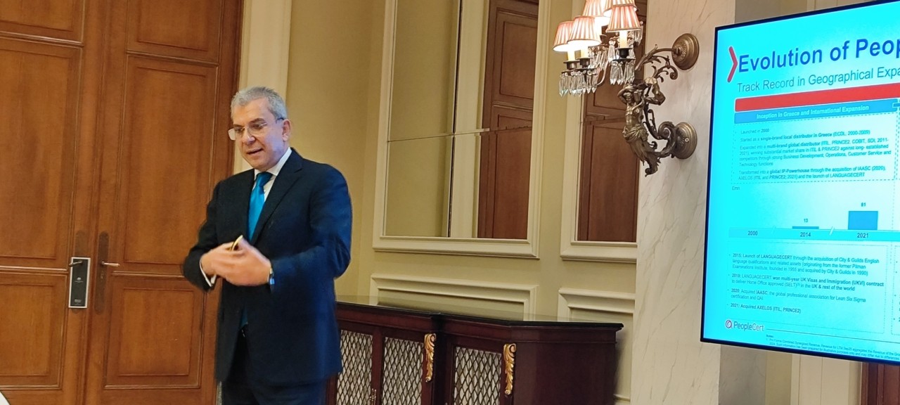 Στην παρουσίασή του, ο ιδρυτής και διευθύνων σύμβουλος της PeopleCert περιέγραψε το νέο επιχειρηματικό μοντέλο του ομίλου ως ένα ολοκληρωμένο οικοδόμημα δεξιοτήτων, που εκτείνεται από την εκπαίδευση και την πιστοποίηση έως την επαγγελματική κατάρτιση και τη σύνδεση με την αγορά εργασίας. Στον πυρήνα του βρίσκεται το μοντέλο «House of Brands», με πέντε διεθνώς αναγνωρισμένα brands, ITIL, PRINCE2, DevOps Institute, LANGUAGECERT και City & Guilds.