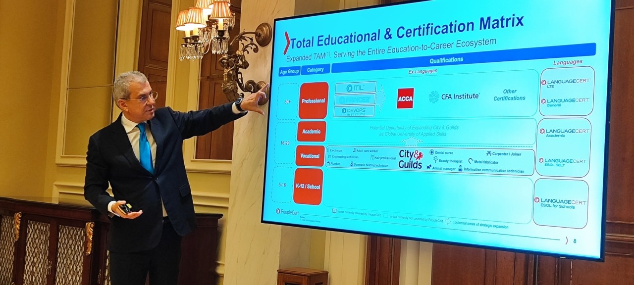 Σε αυτό το πλαίσιο έρχεται και η εξαγορά του City & Guilds, η οποία, κατά τον ίδιο, αλλάζει ποιοτικά το περιεχόμενο και το εύρος του ομίλου.