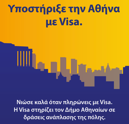 Η Visa ανακοινώνει το πρόγραμμα «Visa for Athens», που ξεκίνησε τον Ιούλιο του 2021, με στόχο να στηρίξει τον Δήμο Αθηναίων σε δράσεις που αφορούν την ανάπλαση και διατήρηση της Αθήνας για τις μελλοντικές γενιές, προωθώντας ταυτόχρονα την υιοθέτηση βιώσιμων πρακτικών τόσο από τους Έλληνες κατόχους καρτών όσο και από τους επισκέπτες της πόλης.