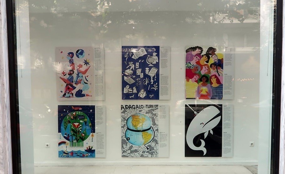 Πολύχρωμες αφίσες με πρωταγωνιστές τον πλανήτη γη, το νερό, το πράσινο, εκπέμπουν μέσα από τη βιτρίνα το δικό τους μήνυμα. Η κάθε μία αντιστοιχεί σε έναν από τους στόχους που έθεσαν οι παγκόσμιοι ηγέτες στην Ατζέντα του 2030, για την εξάλειψη της φτώχειας, την προστασία του πλανήτη και τη διασφάλιση της ευημερίας για όλους τους ανθρώπους.