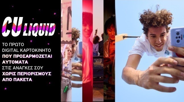 Tο Vodafone CU καινοτομεί και παρουσιάζει το CU Liquid, ένα νέο digital-only καρτοκινητό που υπόσχεται να αλλάξει για πάντα τον τρόπο με τον οποίο λειτουργεί η συγκεκριμένη κατηγορία υπηρεσιών στην Ελλάδα, καθώς καταργεί την επιλογή προκαθορισμένων πακέτων φωνής και δεδομένων και προσφέρει την απόλυτη ελευθερία στους πελάτες Vodafone CU να αξιοποιήσουν τα χρήματά τους, ακριβώς όπως το χρειάζονται. Πρόκειται για το πρώτο σχετικό προϊόν που διατίθεται από τον όμιλο Vodafone σε παγκόσμιο επίπεδο και το οποίο σχεδιάστηκε και αναπτύχθηκε αποκλειστικά από την Vodafone Ελλάδας.