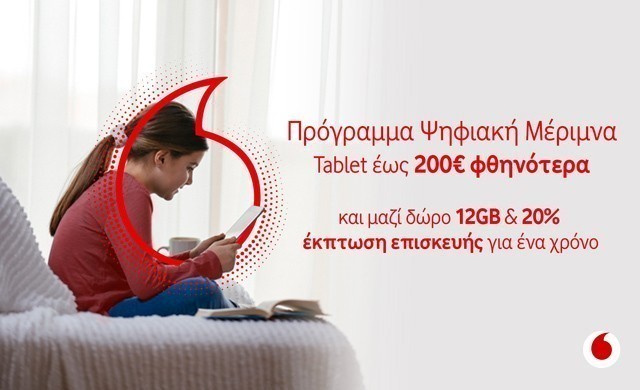 Το πρόγραμμα προσφέρει tablet έως €200 φθηνότερα μέσα από το eshop και την αλυσίδα καταστημάτων Vodafone, αλλά και μοναδικά προνόμια για τους δικαιούχους του προγράμματος.
