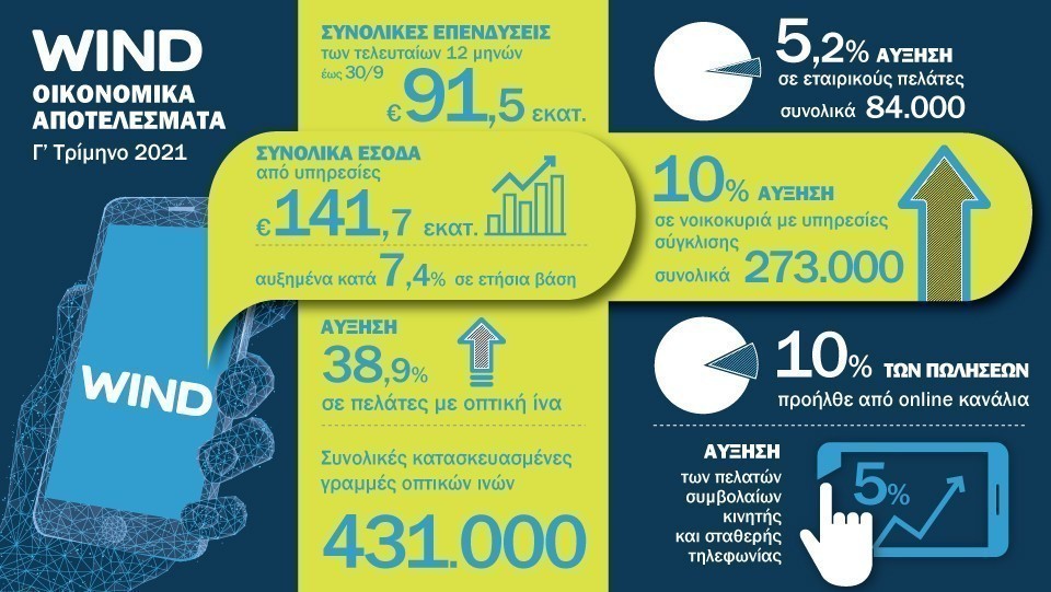 Κατά τη διάρκεια του Γ’ τριμήνου 2021 η WIND πέτυχε σημαντική ανάπτυξη εσόδων και συνδρομητικής βάσης, ενώ σημείωσε πρόοδο σε όλους τους στρατηγικούς της στόχους.