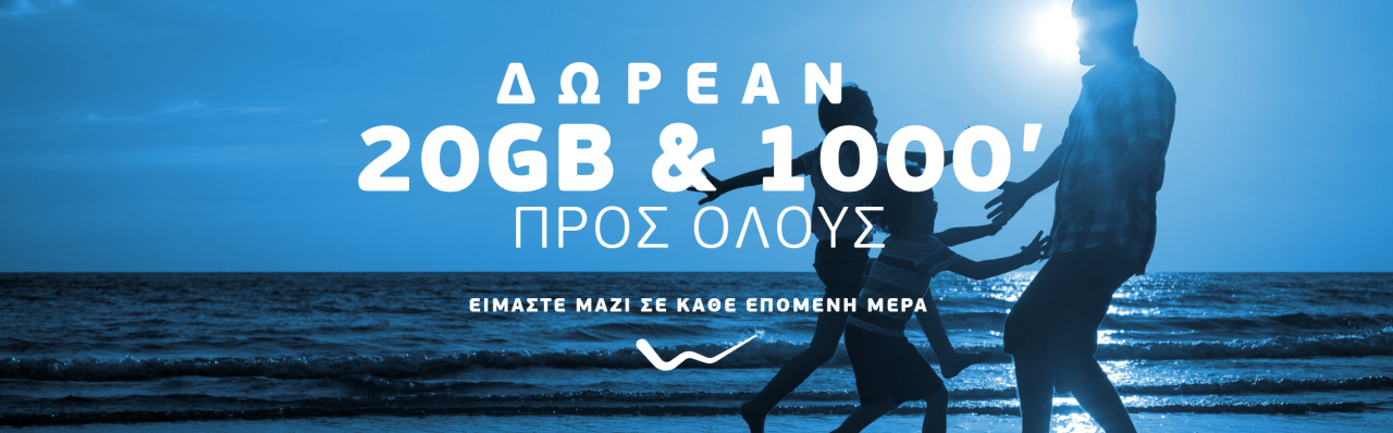 H WIND Ελλάς προσφέρει δωρεάν 20GB και 1000 λεπτά ομιλίας προς όλους με ισχύ 15 ημερών από την ενεργοποίηση.
