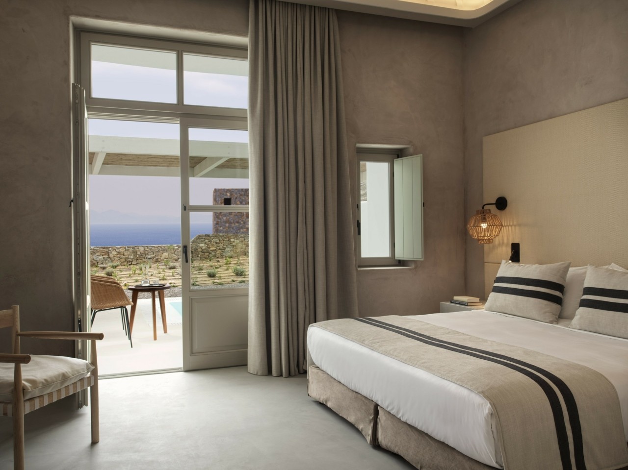 Το Yi Hotel Mykonos διαθέτει 41 δωμάτια και σουίτες με ιδιωτική πισίνα και υδρομασάζ. Με θέα στο Αιγαίο Πέλαγος, το ξενοδοχείο ξεχωρίζει για τη μίνιμαλ αισθητική, την κομψότητα και τη διακριτική πολυτέλεια. Στο Υi η μυκονιάτικη αρχιτεκτονική παράδοση συναντά το σύγχρονο design. Καμπύλες, ευάεροι χώροι φυσικά υλικά όπως ξύλο, άχυρο και τερακότα δημιουργούν μια ατμόσφαιρα κομψότητας και ηρεμίας.