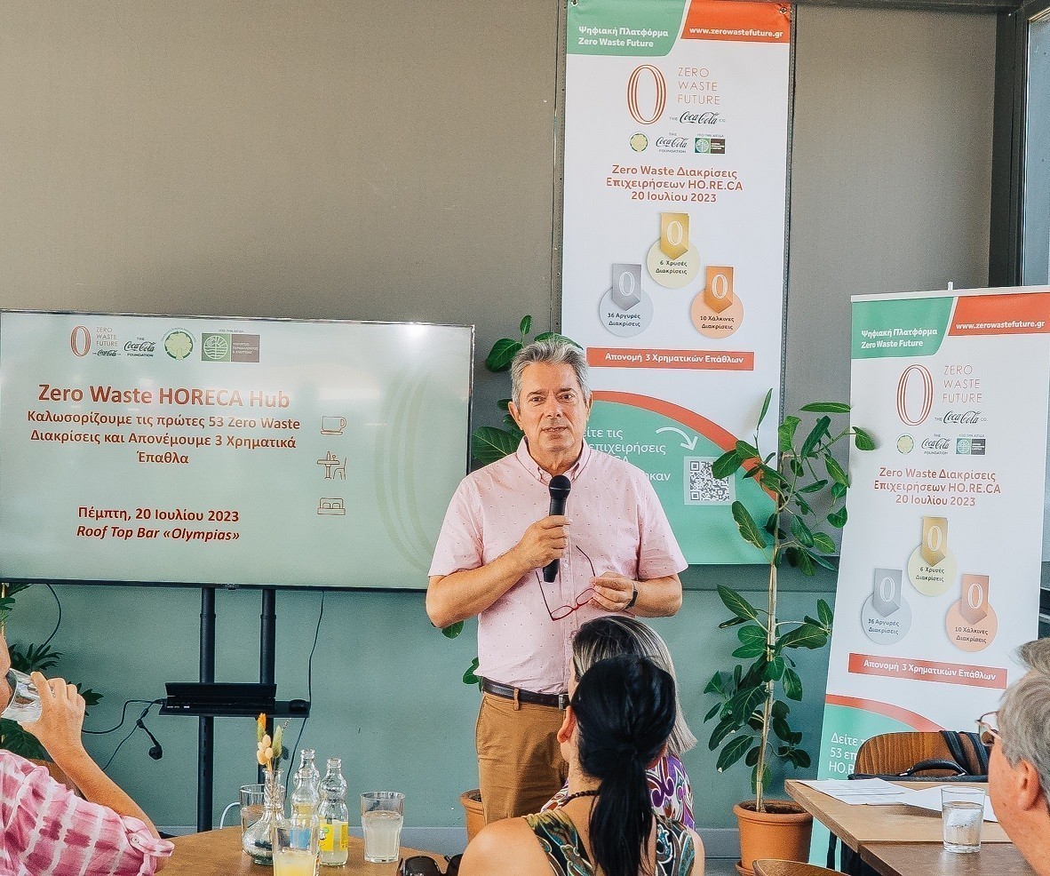 Σε ειδική εκδήλωση που πραγματοποιήθηκε στο Olympias Rooftop Bar, απονεμήθηκαν οι πρώτες Zero Waste διακρίσεις σε επιχειρήσεις του κλάδου Καφεστίασης και Φιλοξενίας που αποτελούν μέλη του Δικτύου Zero Waste HoReCa Hub, επιβραβεύοντας ουσιαστικά την προσπάθεια και την αφοσίωσή τους σε ένα πιο βιώσιμο μέλλον για τον κλάδο.