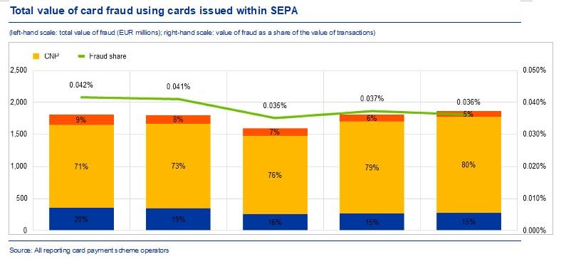 Με άλλα λόγια, για κάθε 100 ευρώ που διακινούνται μέσω των καρτών μόνο τα 3,6 σεντς αφορούσαν δόλιες συναλλαγές.