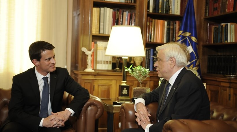 Συνάντηση με τον Πρόεδρο της Δημοκρατίας, Προκόπη Παυλόπουλο είχε την Πέμπτη το απόγευμα ο Γάλλος πρωθυπουργός, Μανουέλ Βαλς, ο οποίος έφτασε στην Ελλάδα νωρίτερα, στο πλαίσιο της διήμερης διπλωματικής αποστολής που είχε προγραμματίσει. Ο Γάλλος πρωθυπουργός αναφέρθηκε στην υποστήριξη που παρέχει η Γαλλία στην Ελλάδα, επισημαίνοντας πως δεν μπορούσε η χώρα μας να βγει εκτός Ευρώπης, καθώς αποτελεί το λίκνο του ευρωπαϊκού πολιτισμού. Τόνισε ότι για να αντιμετωπιστεί το προσφυγικό επιβάλλεται να σταματήσει ο πόλεμος στη Συρία και στο Ιράκ και να γίνει σεβαστή η συμφωνία της ΕΕ με την Τουρκία και τόνισε τη σημασία της συνεργασίας που θα αναπτυχθεί τόσο σε οικονομικό επίπεδο, όσο και στο επίπεδο των πανεπιστημίων και της έρευνας.