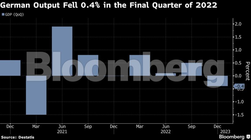 Η οικονομία της Γερμανίας σημείωσε μεγαλύτερη του αναμενόμενου συρρίκνωση στα τέλη του 2022. Η παραγωγή συρρικνώθηκε κατά 0,4% έναντι προηγούμενης εκτίμησης για μείωση του ΑΕΠ κατά 0,2%, σύμφωνα με τα στοιχεία της Destatis.