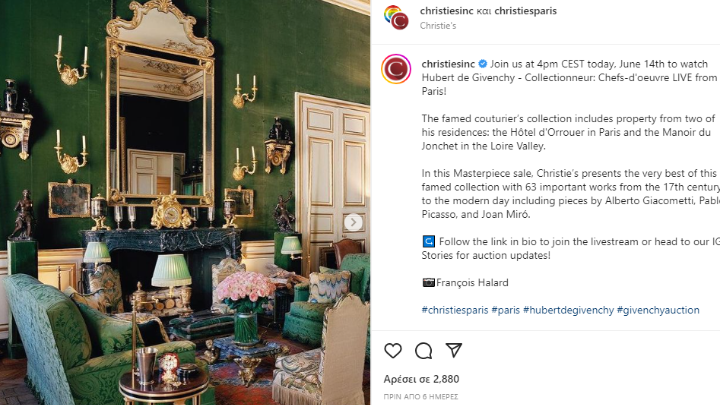 Δημοπρασία αριστουργημάτων του αείμνηστου σχεδιαστή μόδας Hubert de Givenchy που διοργάνωσε ο οίκος Christie’s επρόκειτο να διαρκέσει τέσσερις ημέρες και να ολοκληρωθεί την Παρασκευή.