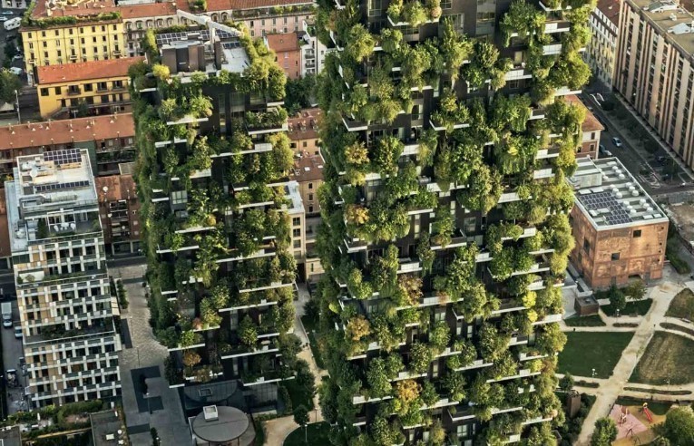Ένα τέτοιο παράδειγμα είναι το περίφημο αρχιτεκτονικό αριστούργημα του Bosco Verticale (Κάθετο Δάσος) στο Μιλάνο, που είναι δύο πρότυποι ουρανοξύστες με ενσωματωμένα περίπου 800 δέντρα (κεντρική φωτό).