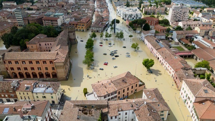 Όλη η Ιταλία βιώνει βροχερό και υγρό Μάιο, αλλά τις τελευταίες ημέρες η Εμίλια Ρομάνια υπέστη απίστευτη κακοκαιρία: πελώριες αγροτικές εκμεταλλεύσεις πνίγηκαν, βυθίστηκαν κάτω από νερά και λάσπες, χωράφια με σιτηρά και οπωροκηπευτικά ρημάχτηκαν , βοσκότοποι χάθηκαν, χωριά σαρώθηκαν από χείμαρρους λάσπης, γέφυρες κατέρρευσαν, πάνω από 400 δρόμοι βούλιαξαν.