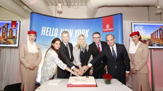 Εγκαινιάστηκε σήμερα το μεσημέρι το πρώτο καθημερινό δρομολόγιο της «Emirates» Αθήνα – Νέα Υόρκη.