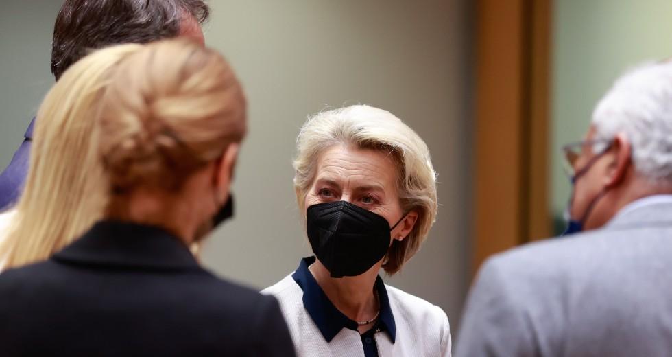 Στην συνέντευξη Τύπου που ακολούθησε την συνεδρίαση του Ευρωπαϊκού Συμβουλίου η πρόεδρος της Ευρωπαϊκής Επιτροπής Ούρσουλα φον ντερ Λάιεν τόνισε ότι ο πρόεδρος Πούτιν επέλεξε να επαναφέρει τον πόλεμο στην Ευρώπη, ωστόσο η Ευρώπη είναι ενωμένη. «Το Κρεμλίνο θα το πληρώσει». δήλωσε χαρακτηριστικά η πρόεδρος της Ευρωπαϊκής Επιτροπής. Σύμφωνα με την ίδια «το Ευρωπαϊκό Συμβούλιο κατέληξε σε κυρώσεις σε συγκεκριμένους τομείς που θα πλήξουν την ρωσική οικονομία καθώς θα αφορούν στο 70% των ρωσικών τραπεζών, κάτι που θα αυξήσει τον πληθωρισμό και το δημόσιο χρέος της Ρωσίας στις ρωσικές ελίτ, στις εξαγωγές συγκεκριμένων προϊόντων, σε αεροπορικές εταιρείες, ακόμα και σε έκδοση Visa Ρώσους πολίτες.