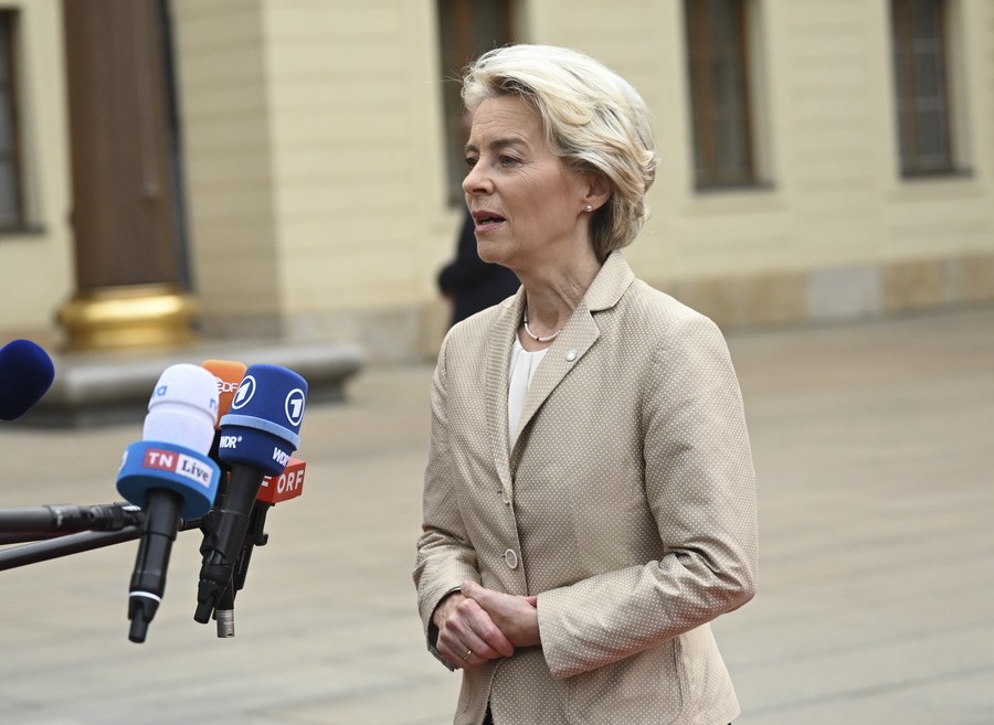 Χθες είχαμε μια ενδιαφέρουσα πρώτη «Ευρωπαϊκή Πολιτική Κοινότητα» και ήταν μεγάλη επιτυχία. Βρέθηκαν μαζί 44 χώρες πλην Ρωσίας μαζί και η Ουκρανία με τον πρωθυπουργό Ζελένσκι, μέσω βίντεο, σημείωσε η επικεφαλής της Κομισιόν Ούρσουλα Φον ντερ Λάιεν προσερχόμενη στην άτυπη Σύνοδο των 27 Ευρωπαίων ηγετών στην Πράγα.