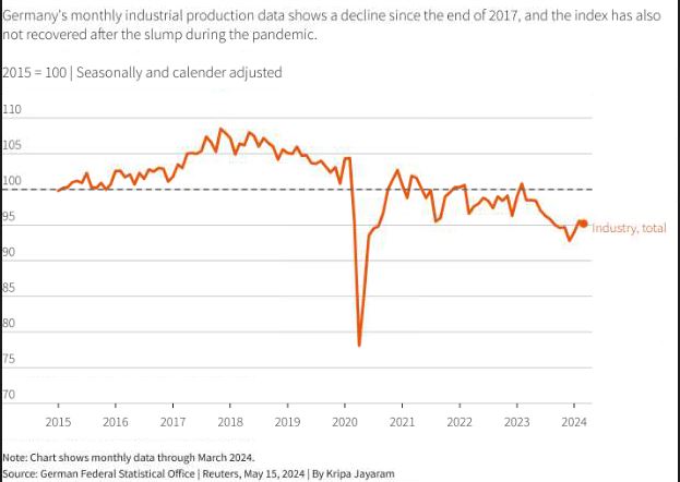 Σύμφωνα με τον Gern του Kiel Institute, η χώρα ακολουθεί μια συνηθισμένη τάση για τις ώριμες οικονομίες, στο πλαίσιο της οποίας η συνεισφορά της βιομηχανικής παραγωγής στη συνολική οικονομική δραστηριότητα μειώνεται.