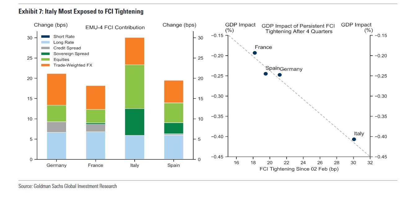 Η Ιταλία είχε τη μεγαλύτερη έκθεση στη σύσφιξη του FCI λόγω των spreads των κρατικών ομολόγων και των αγορών της.