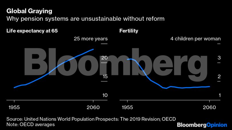 Η συνταξιοδοτική κρίση που βιώνουν οι χώρες παγκοσμίως αποτελεί μια ωρολογιακή βόμβα, όχι τόσο επικίνδυνη όσο η κλιματική αλλαγή, αλλά με σαφείς συνέπειες για το χρηματοπιστωτικό σύστημα και το βιωτικό επίπεδο. Το 2019 ένας στους δέκα ανθρώπους θα συνταξιοδοτηθεί, σύμφωνα με τον ΟΗΕ. Το έτος 2070, η αναλογία θα είναι: ένας στους πέντε.