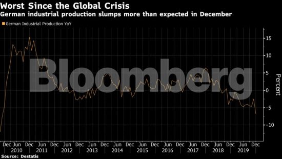 Η γερμανική βιομηχανική παραγωγή σημείωσε απροσδόκητη άνοδο τον Φεβρουάριο, ανέφερε η Destatis, προσθέτοντας ότι ο κορωνοϊός δεν είχε ακόμα σημαντική επίπτωση στον δείκτη του γερμανικού βιομηχανικού τομέα. Οι αναλυτές αναμένουν μείωση της βιομηχανικής παραγωγής τον Μάρτιο και τον Απρίλιο, τους μήνες που επηρεάζονται από τα μέτρα αντιμετώπισης του κορωνοϊού.