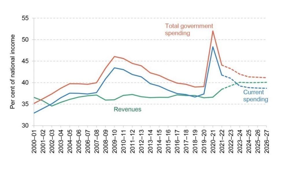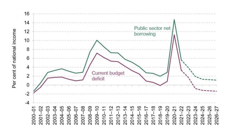 Όταν η βρετανική οικονομία «άνοιξε» ξανά, μία σχετικά ισχυρή ανάκαμψη των εσόδων, σε συνδυασμό με μία σημαντική αύξηση των φόρων, σήμαινε ότι τα φορολογικά έσοδα προβλεπόταν να αυξηθούν ως μερίδιο του ΑΕΠ.