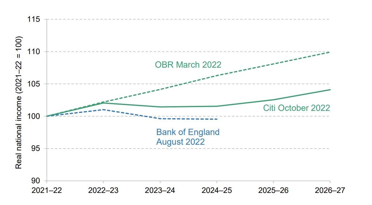 «Μοιάζει να έχει περάσει πολύς καιρός από τις ανοιξιάτικες δηλώσεις του Ρίσι Σούνακ τον Μάρτιο του 2022, όταν η οικονομική ανάπτυξη προβλεπόταν να είναι σταθερή, αν και όχι θεαματική…Δύο υπουργοί μετά, πολλά έχουν αλλάξει. Ο αυξανόμενος πληθωρισμός έχει εκτοξεύσει τις δαπάνες για την εξυπηρέτηση του χρέους και έχει υποβαθμίσει τις προοπτικές ανάπτυξης.»