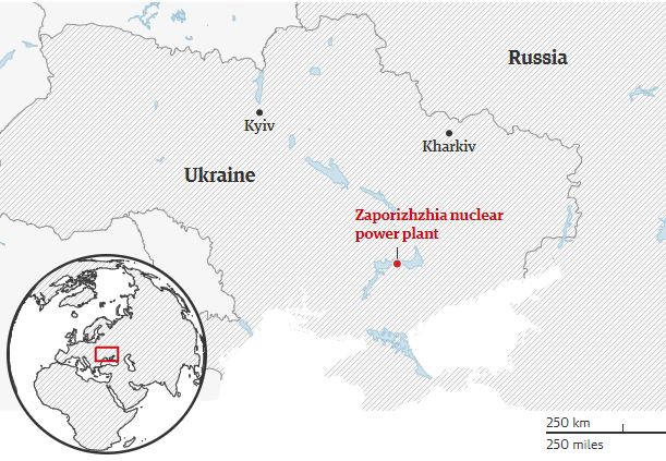 Το επίπεδο ραδιενέργειας στην εγκατάσταση, που μετράει έξι αντιδραστήρες και παρέχει μεγάλο μέρος του ηλεκτρισμού που καταναλώνει η χώρα, παραμένει αμετάβλητο, διαβεβαίωσε από τη δική του πλευρά ο Διεθνής Οργανισμός Ατομικής Ενέργειας (ΔΟΑΕ), σύμφωνα με τον οποίο δεν χτυπήθηκε κανένας αντιδραστήρας. Νωρίτερα, ο ΔΟΑΕ απηύθυνε επείγουσα έκκληση «να σταματήσει η χρήση βίας» στο πυρηνικό εργοστάσιο, προειδοποιώντας εναντίον «του πολύ σοβαρού κινδύνου εάν χτυπηθούν οι αντιδραστήρες».