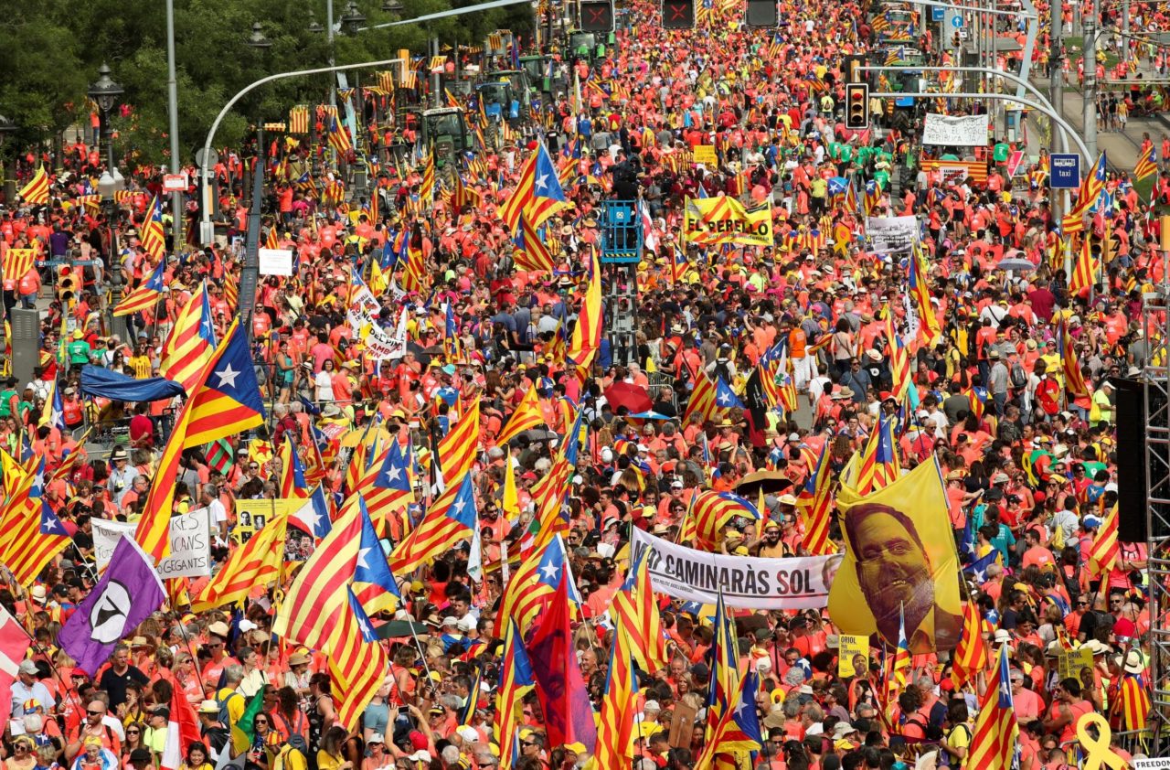 Μία από τις ομιλήτριες σε αυτήν την ογκώδη συγκέντρωση, που οργάνωσαν κόμματα και οργανώσεις υπέρ της ανεξαρτησίας, έκανε λόγο, από την πλευρά της, για 500.000 συμμετέχοντες, που διαδήλωσαν με σύνθημα «ο αυτοκαθορισμός δεν είναι έγκλημα».
