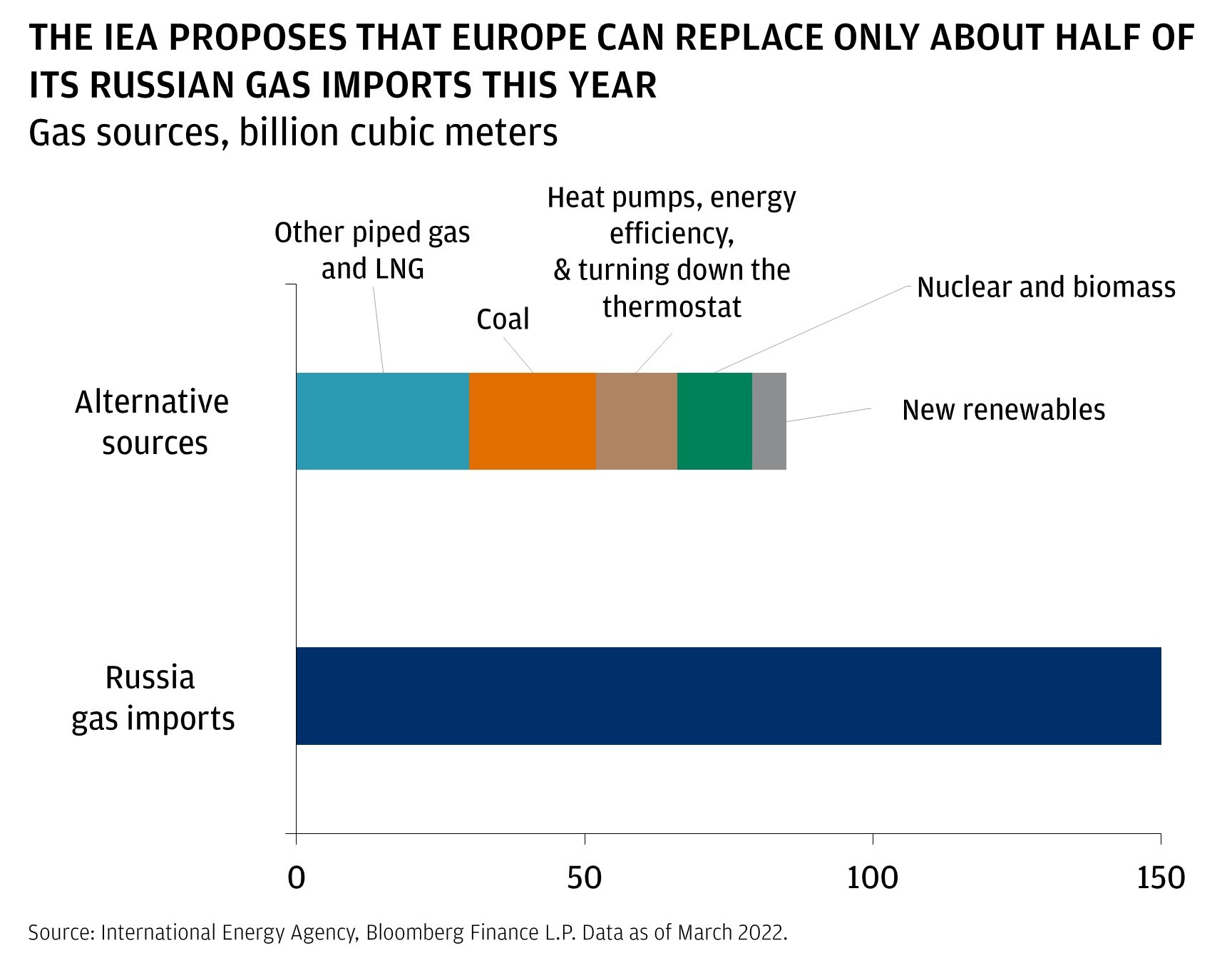 Το φυσικό αέριο μπορεί, επίσης, να υγροποιηθεί σε LNG και να μεταφερθεί μέσω ειδικών τάνκερ. Αλλά πρέπει, επίσης, να μετατραπεί σε αέριο όταν φτάσει στον προορισμό του, κάτι που απαιτεί άκρως εξειδικευμένες υποδομές. Η Ευρώπη, αν και έχει ξεκινήσει να λαμβάνει μέτρα αντιστάθμισης της έλλειψης είτε μέσω παραδοσιακών μέσων (άνθρακας) είτε μέσω νέων (ΑΠΕ), δε θα καταφέρει να αντισταθμίσει τις ελλειμματικές ρωσικές παροχές, ιδιαίτερα εάν το Κρεμλίνο αποφασίσει ολική άρση των ροών.