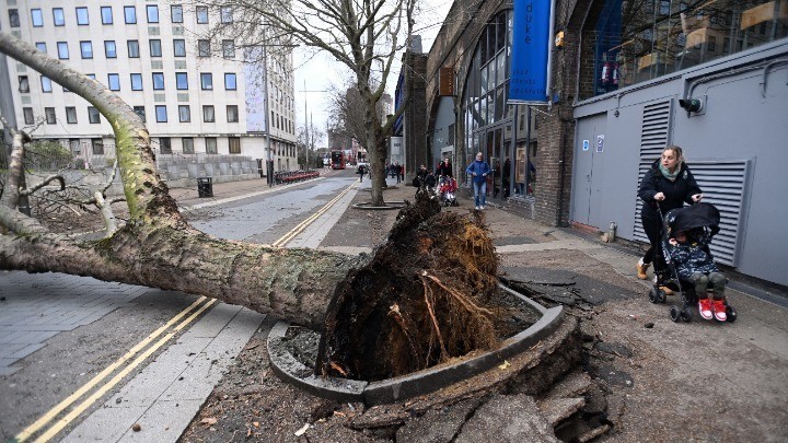 Οι δρόμοι της βρετανικής πρωτεύουσας, όπου κηρύχθηκε για πρώτη φορά αυτό το επίπεδο συναγερμού μετά την εγκαθίδρυση του εν λόγω συστήματος το 2011, ήταν ασυνήθιστα ήρεμοι. Ένα τμήμα της στέγης που καλύπτει το O2 Arena, το περίφημο στάδιο συναυλιών και αθλητικών εκδηλώσεων στο Λονδίνο, υπέστη ζημιές από τις ριπές ανέμου.