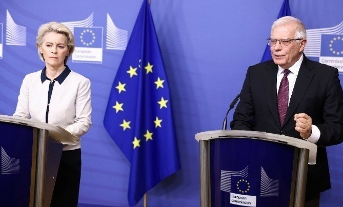 Στο πλευρό των δυο αυτών κορυφαίων αξιωματούχων της Επιτροπής ήταν και ο Ύπατος Εκπρόσωπος της Ένωσης για θέματα Εξωτερικής Πολιτικής και Πολιτικής Ασφαλείας Ζοζέπ Μπορέλ, δείχνοντας ότι οι Βρυξέλλες συνδέουν για πρώτη φορά το διεθνές εμπόριο με τις γεωπολιτικές εξελίξεις και την ασφάλεια.