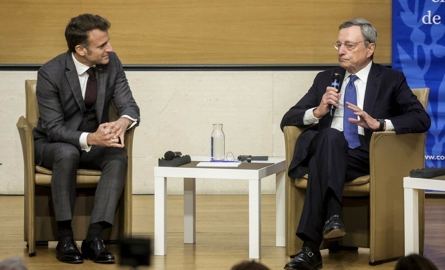 Ο πρόεδρος της Γαλλίας Εμανουέλ Μακρόν και ο πρώην πρόεδρος της Ευρωπαϊκής Κεντρικής Τράπεζας Μάριο Ντράγκι, κατά τη διάρκεια διάλογου που είχαν σήμερα στο Παρίσι σε εκδήλωση που διοργάνωσε το Κολλέγιο της Γαλλίας, δεν έκρυψαν τις ανησυχίες τους για τις συνέπειες που θα έχει στην ευρωπαϊκή οικονομία η επικράτηση του Τραμπ στις αμερικανικές εκλογές και υπογράμμισαν την ανάγκη λήψης μέτρων για την κάλυψη του τεχνολογικού χάσματος που χωρίζει τις ΗΠΑ από την Ευρώπη και την ενίσχυση της ευρωπαϊκής ανταγωνιστικότητας.