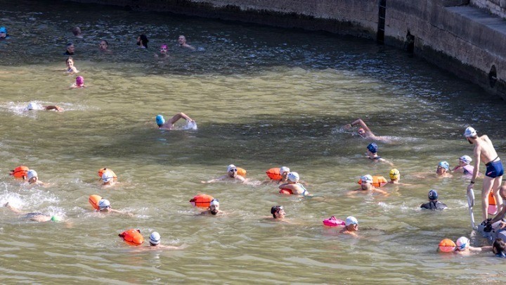 Athletes swimming next to a drainage pipe in the River Seine… pic.twitter.com/deuVVR3Zod