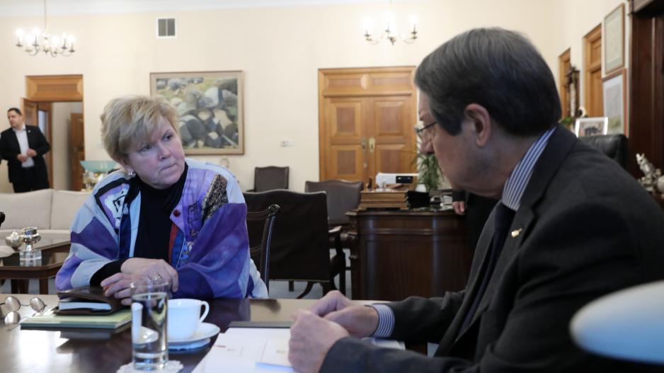 Σειρά επαφών με τον Πρόεδρο της Κυπριακής Δημοκρατίας, Νίκο Αναστασιάδη, και τον τ/κ ηγέτη Μουσταφά Ακιντζί, έχει την Κυριακή η Ειδική Απεσταλμένου του Γ.Γ. του ΟΗΕ για το Κυπριακό, Τζέιν Χολ Λουτ.