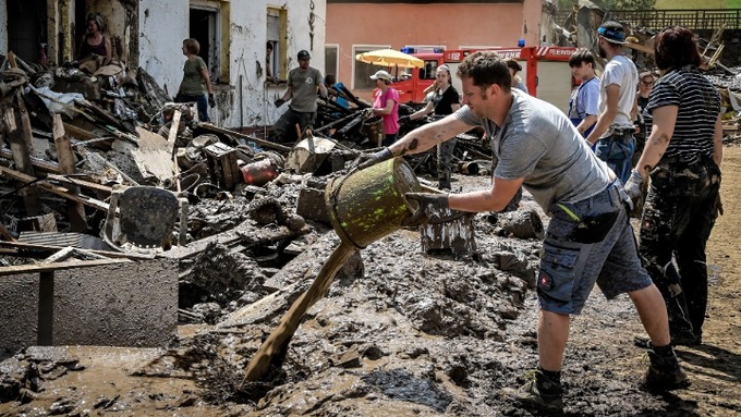 «Είμαστε στο πλευρό σας» δήλωσε η Μέρκελ στους κατοίκους της μικρής πόλης Αντενάου στο γερμανικό κρατίδιο Ρηνανίας-Παλατινάτου, χαρακτηρίζοντας την κατάσταση εκεί, ως «τρομακτική».