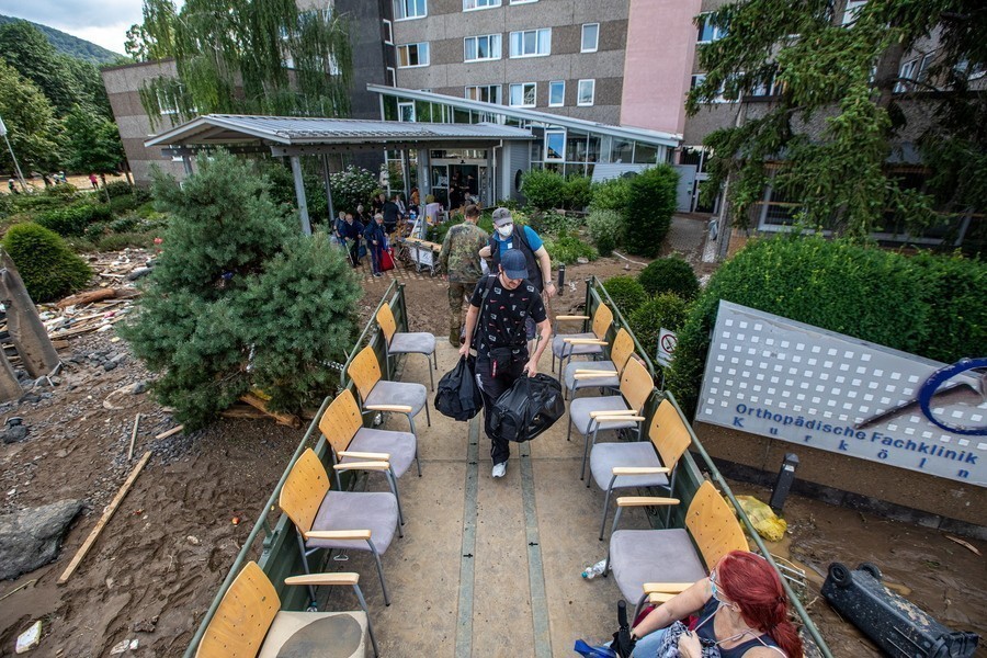 Ο ‘Αρμιν Λάσετ, ο οποίος παρενέβη χθες το βράδυ σε ζωντανή εκπομπή του ZDF από το Στόλμπεργκ στο ‘Ααχεν, μια από τις περιοχές που έχουν πληγεί περισσότερο από τις πλημμύρες, τόνισε ότι θα καταβληθεί κάθε δυνατή προσπάθεια προκειμένου να αποκατασταθούν όσο γίνεται πιο σύντομα κατεστραμμένοι δρόμοι, γέφυρες και άλλες εγκαταστάσεις. Τις προσπάθειες των υπηρεσιών έκτακτης ανάγκης και των Ενόπλων Δυνάμεων που επιχειρούν στις πληγείσες περιοχές συνδράμουν αμερικανοί εθελοντές από την γειτονική αεροπορική βάση του Σπανγκντάλεμ, με τη διανομή εκατοντάδων σάκων με άμμο στους κατοίκους της περιοχής.